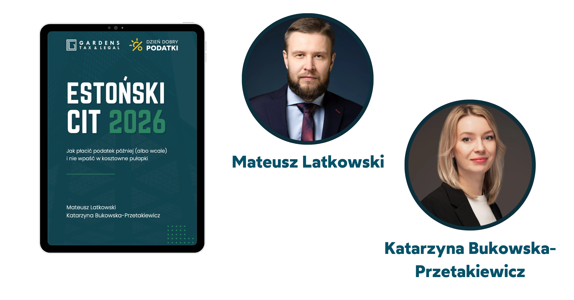 Na cele wysyłki newslettera – wyrażam zgodę na otrzymywanie drogą elektroniczną na podany adres e-mail informacji handlowych, dotyczących produktów i usług oferowanych przez Gardens Tax & Legal z siedzibą w Łodzi przy al. 1 Maja 31/33 lok. 5, na podstawie art. 398 ust. 1 ustawy z dnia 12 lipca 2024 r. – Prawo komunikacji elektronicznej. Wiem, że mogę cofnąć zgodę w dowolnym momencie. Zapoznałem/am się z polityką prywatności.